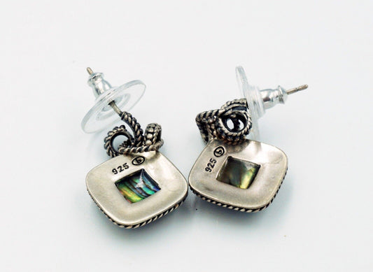 Pair Sterling Silver Twisted Rope Motif Earrings w. Abalone Shell Accents (Tra)