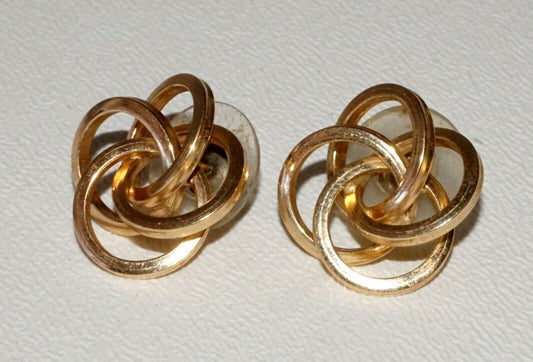 Pair Vintage 14k Yellow Gold 4x Ring in Ring Motif Pierced Ear Earrings (NoN) E2