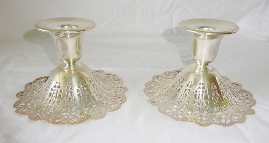 Pair US Silver Plated Pierced Design Footed Candlesticks by Wm. Rogers (Kow)