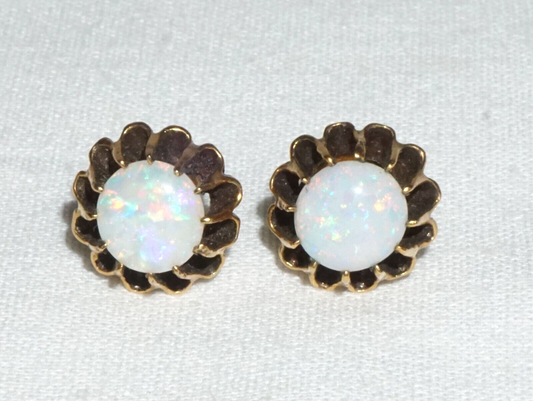 Pair Vintage 14k Yellow Gold Stud Earrings set w. 2x White Opals (GeB)#8