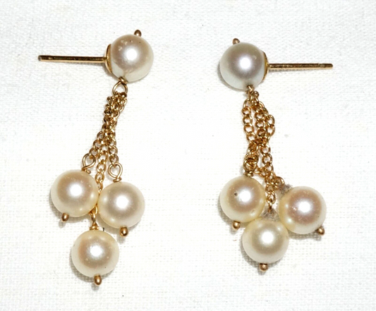 Pair Vintage 14k Yellow Gold Stud Earrings w. Dangle 8x Pearl Accents (GeB)#8