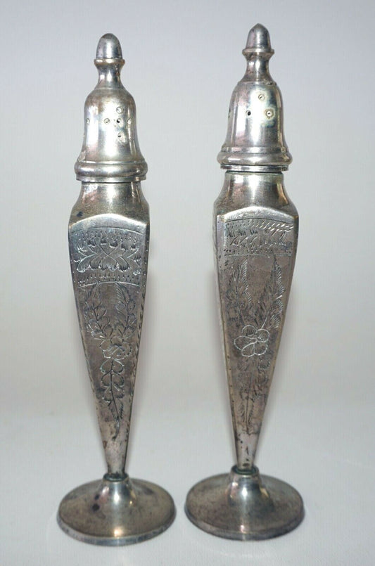 Pair US Silver Plated Salt & Pepper Shakers w. Floral Motif by Towle (HeN)