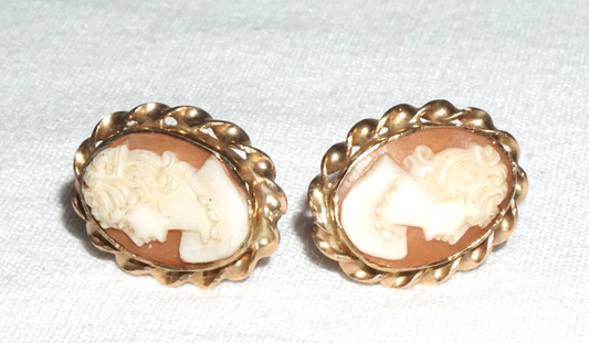 Pair Vintage 10k Yellow Gold Earrings w. Sell Cameo w. Woman Bust Motifs (GeB)#8