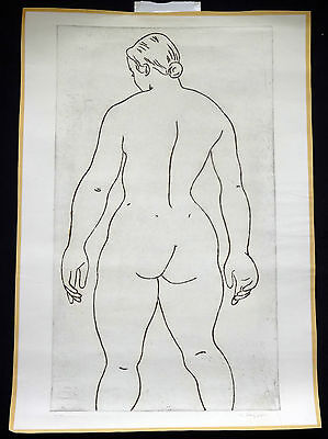 San Fran CA Etching Pyrography Print "Female Nude" by Edward Hagedorn (1902-82)