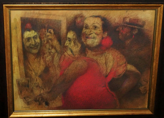 Spanish Oil Pastel Painting The Mirror by Ezequiel Lopez Garcia (b.1938) (ChA)
