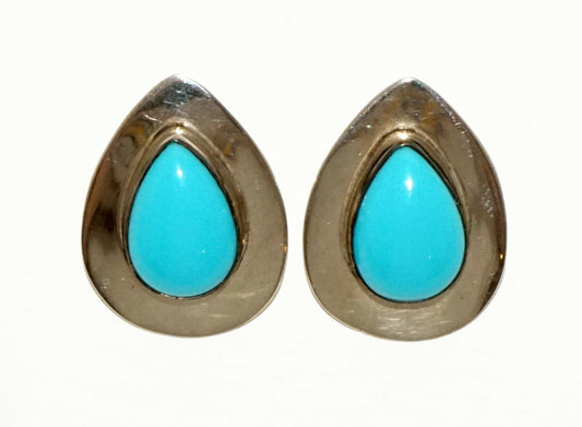South Western US Sterling Silver Earrings Bezel set Turquoise Accents (LeP)#23