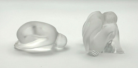 Set of 2 Vintage French Lalique Crystal Nude Figurines- Resting & Sitting (TuC)