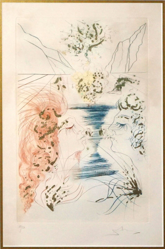 Spanish Etching w Hand Coloring Artist's Proof "The Kiss" by Salvador Dali (HiC)