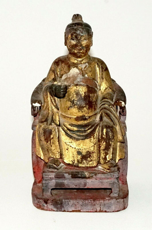 17/18C Chinese Gilt Wooden Folk Carving Seated Deity (MeE)