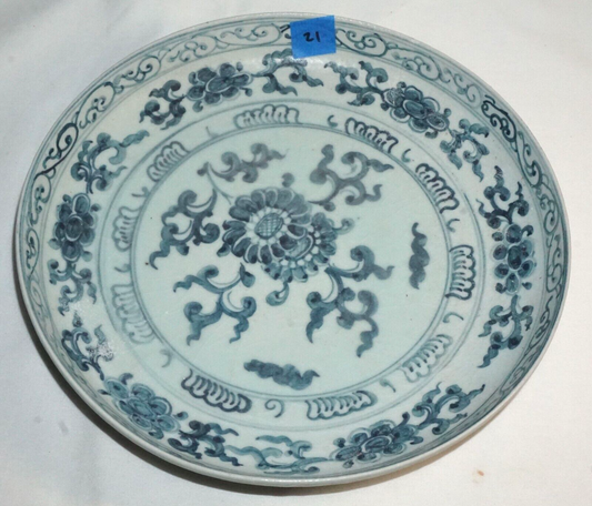 16C Chinese Anamese Blue & White Floral Motif Large Plates or Chargers (JSt)21