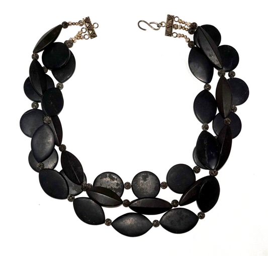 Triple Strand Black Hard Stone Bead Necklace w Silver-Tone Clasp (MaM)16