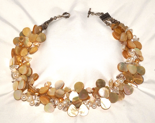 Triple Strand Silver Necklace w Mother of Pearl, Keshi & Irregular Pearls (MaM)2