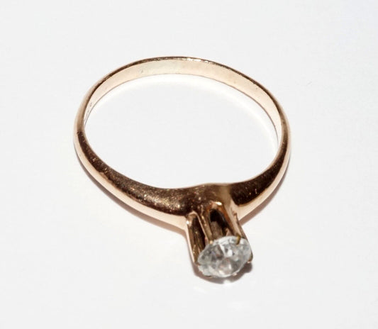 US 14k Yellow Gold Engagement Ring Sz.5 w. 1x 0.25ct. Cubic Zirconia (LeL)