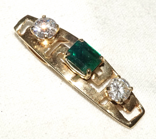 Vintage 14k Yellow Gold Greek Pattern Pendant w. 1x Emerald & 2x Cz's (GoB) #30