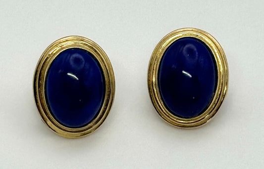 Vintage 14k Yellow Gold Lapis Lazuli Cabochon Dome Post Earrings (KnK)