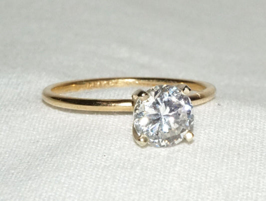 Vintage 14k Yellow Gold Engagement Ring Sz.7 w. 1ct. Cubic Zirconia Accent (YRa)