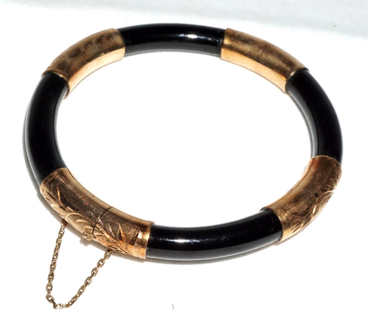 Vintage 14k Yellow Gold Hinged Black Coral Bangle Bracelet 51mm Inside