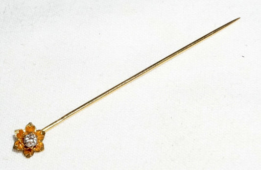 Vintage 14k Yellow Gold Flower Design Stick Pin set w. 1x Diamond Accent (InS)