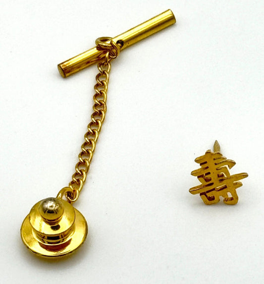 Vintage 14k Yellow Gold Good Luck Symbol Tie Tack w Bar & Chain (MiM)