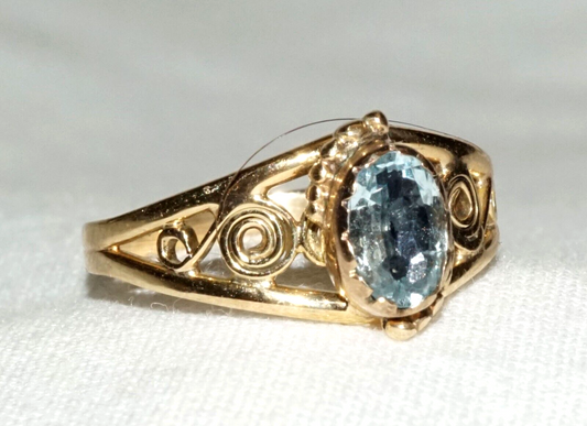 Vintage 14k Yellow Gold Filigree Ring Sz. 5.75 Bezel set w. 1x Aquamarine (CoM)