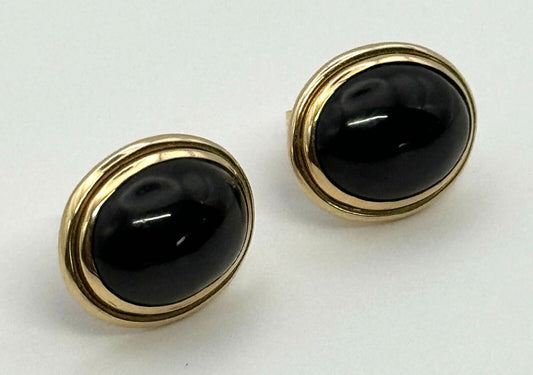Vintage 14k Yellow Gold Onyx Oval Button Earrings (KnK)