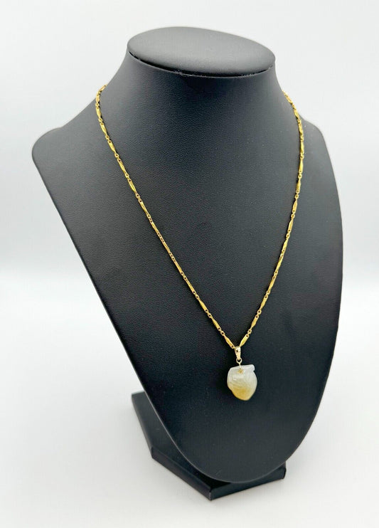 Vintage 14k Yellow Gold Necklace 17.5 inches w Jadeite Peach Pendant (HoJ)