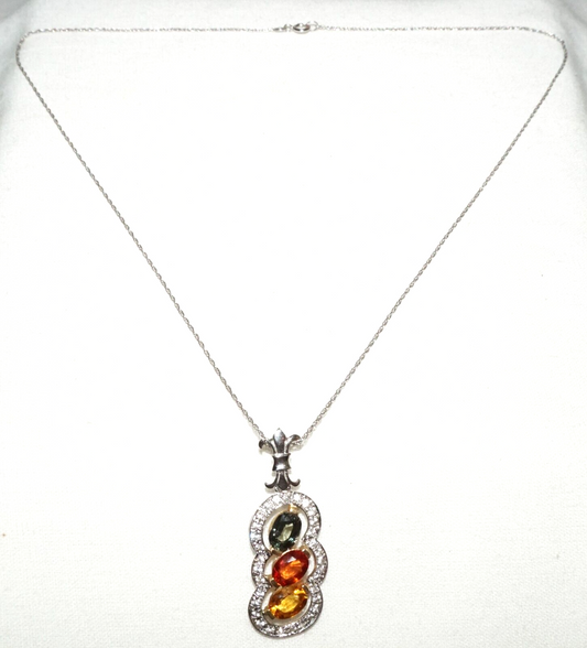 Vintage 14k Yellow Gold Necklace w. Tourmaline & Diamond Pendant LeVian (QuC) 11