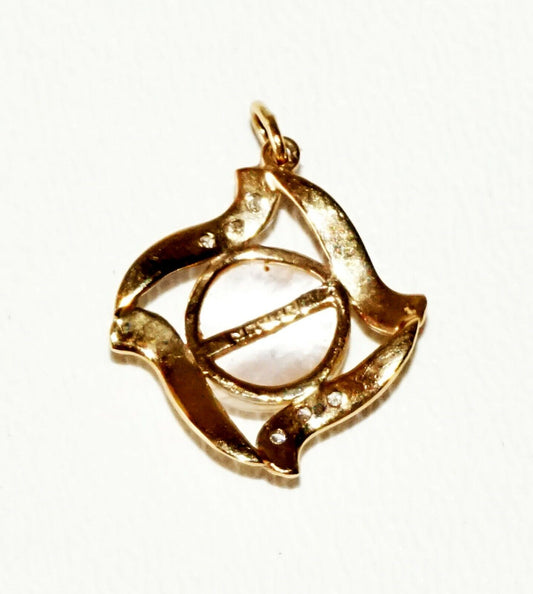 Vintage 14K Yellow Gold Mini Pendant w. 1x Pearl & 6x Diamonds (SaR)#161