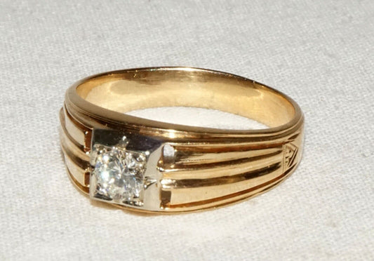 Vintage 14k Yellow Gold Men's Ring Sz. 11 w. 1/2ct. Diamond in Box (InS)L5