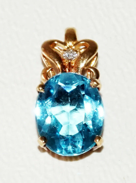 Vintage 14k Yellow Gold Mini Pendant set w. Blue Topaz & 1x Diamond (SaR)#128