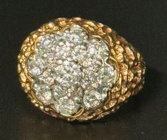 Vintage 14k Yellow Gold Nugget Style Ring Sz 8.5 w 16 Diamond Cluster (MeK)