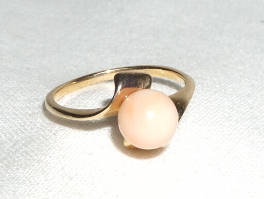 Vintage 14k Yellow Gold Ring Sz.4.5 set w. 1x Pink Coral Bead Accent (BrM)L3