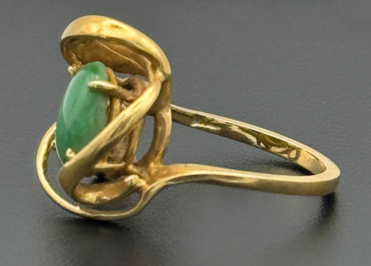 Vintage 14k Yellow Gold Ring Sz. 5.5 w Oval Green Jadeite Cabochon (McC)