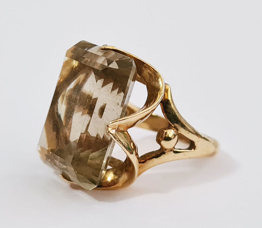 Vintage 14k Yellow Gold Ring Sz.6 w. Emerald cut Smoky Quartz (NaD)#1b