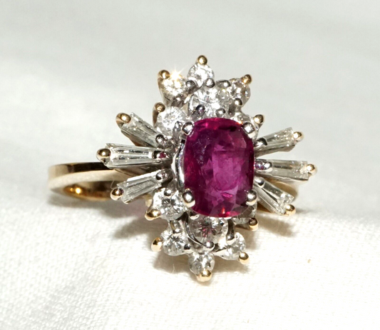 Vintage 14k Yellow Gold Ring Sz.6 1x Ruby & 18x Round & Baguette Diamonds (FeD)