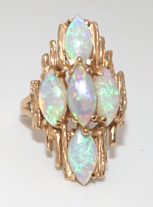Vintage 14k Yellow Gold White Opal Ring w 5 Marquise Cut Opals Sz. 7 (ArS)