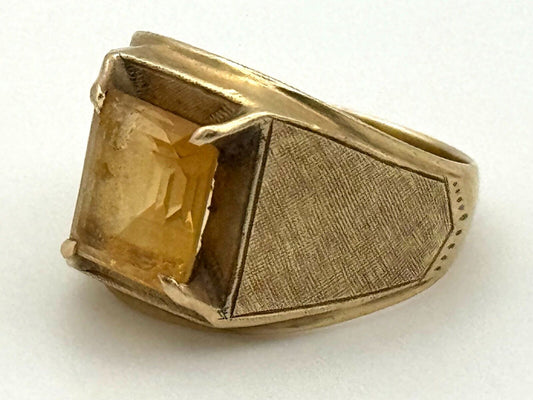 Vintage 14k Yellow Gold Textured Ring Sz 8.75 & 1x Citrine Approx. 2.60 ct (TuC)