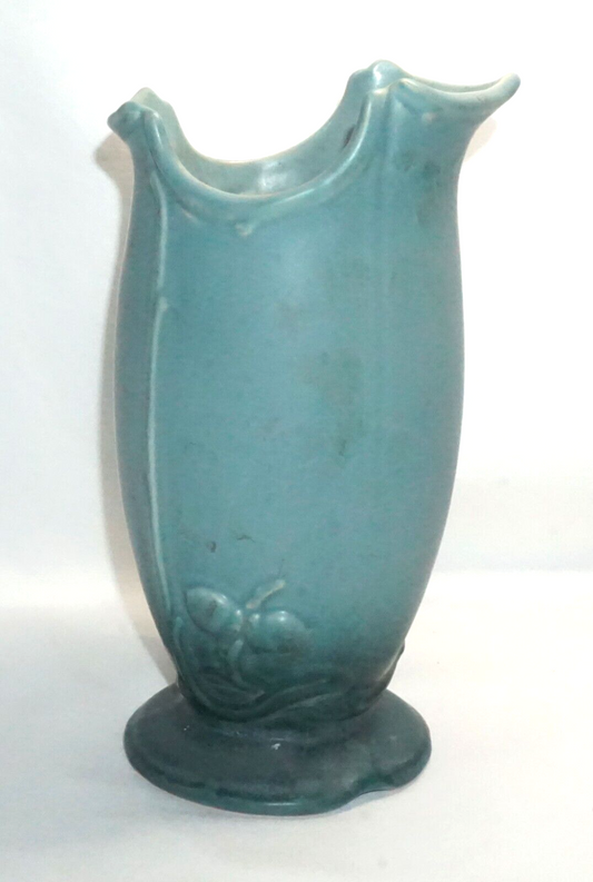 Vintage Arts & Crafts Weller Pottery Matte Blue Green Vase w Oak Leaves (NeW)