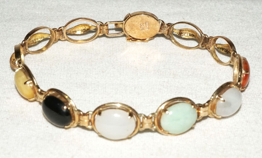 Vintage Chinese 14K yellow Gold Link Bracelet w. 6x Multicolor Jades (SaR)#154