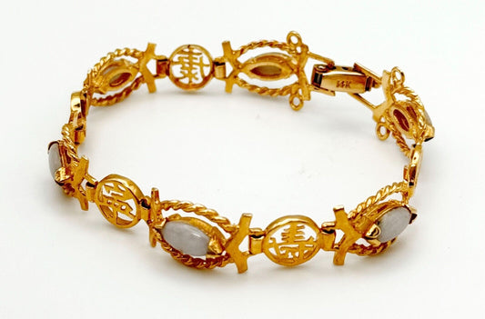 Vintage Chinese 14k Yellow Gold Braided Link & Jadeite Bracelet 7" (MeC)
