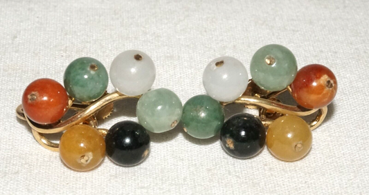 Vintage Chinese 14k Yellow Gold Earrings w 12x Multicolor Jadeite Jades (InS)#L1