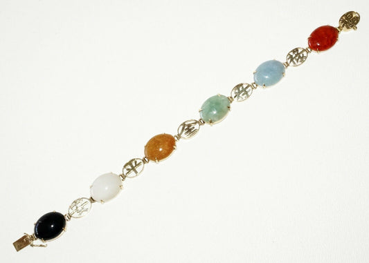 Vintage Chinese 14k Yellow Gold Bracelet w. 6x Multicolor Jade Accents (InS)L5
