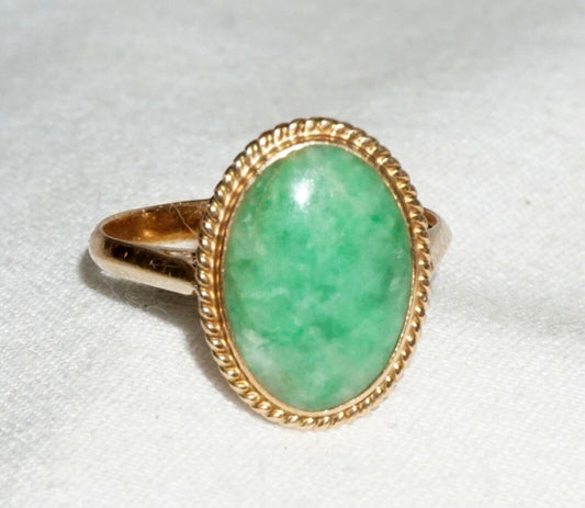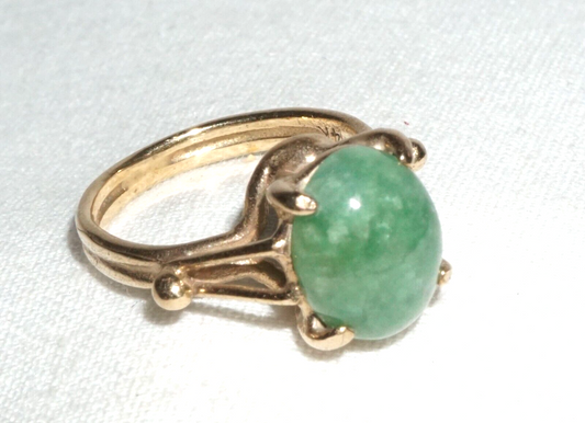 Vintage Chinese 14k Yellow Gold Ring Sz.4 set w. Green Jadeite Jade Cab (BrM)L3