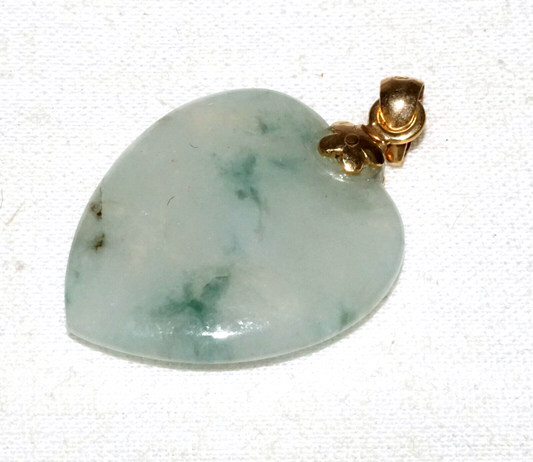 Vintage Chinese 14k Yellow Gold Translucent Jadeite Jade Heart Pendant (InS)L6