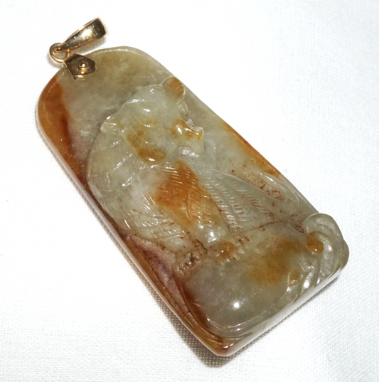 Vintage Chinese 14k Yellow Gold set White Jadeite Jade Pendant (SaR) #105