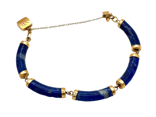 Vintage Chinese 14k Yellow Gold Sodalite Bead (6.7 mm) Bracelet 7" (McC)