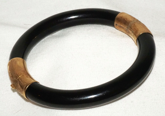 Vintage Chinese 14k Yellow Gold set Black Coral Bangle Bracelet (LeS)L25
