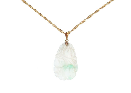 Vintage Chinese 14K Yellow Gold Necklace w Jadeite Jade Peach Motif Pendant (Hil