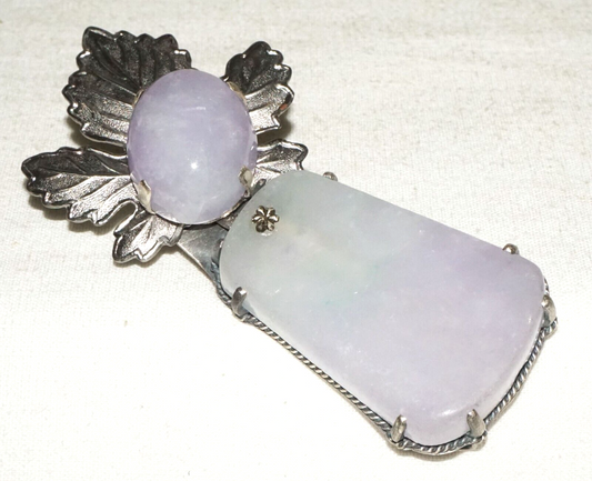 Vintage Chinese Fashion Brooch Pendant w. 2x Lavender Jade Accents (LeP)