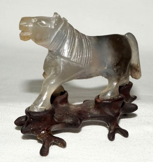 Vintage Chinese Gray & Purple Fluorite Carving Frolicking Horse on Stand (FeH)